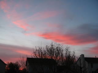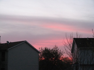 This morning, as I sat in my Favorite Writing Spot at the Dining Room Table, with the East Facing Window on my left, I couldn't help but marvel, and then stop and stare at the glowing pink horizon with lavender layers above. New Colors. Different than yellow, orange and gold. I felt compelled to try to capture this Quiet Moment to share with you as well. So vivid. So true. More amazing in person than through the camera's lens. But better than nothing. Better than words alone. To add a picture, or two or three and try to share the Magnificence of the Morning with this poem, "Oh, What A Sunrise!".