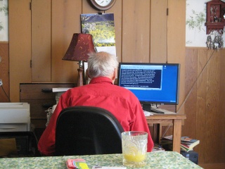 The Writer At Work. I took this picture of my Grandfather tweaking his latest story from the seat where I was reading his other recent work in March 2011. He’s writing still. Poems. Stories. Preserving History of the Area. Always working. Words flowing. Keys tapping. There are more stories to tell.
