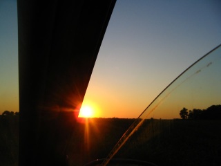 Last night, on July 4, 2011, my oldest son (he's going into 6th grade) took this sunset picture from the front seat of my car. We were going to town from my in laws farm to see the fireworks in the park. As I handed him the camera and pulled the car over I asked if he would, "Roll down the window and take a picture of the sun setting." What I MEANT TO SAY was, "Roll the window ALL THE WAY DOWN and THEN take a picture…" Regardless of my dirty car windows showing, I'm glad he captured the brightly glowing sun as it set over the corn fields of central Illinois and I do have to acknowledge that technically he did follow directions.