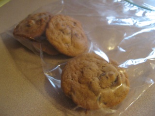 The BONUS is that our refrigerator is stocked with bowls, plates and platters of Good Food and I’m not cookin’ for a few days time. Turkey sandwiches and microwaved side dishes comin’ right up. Mmmmmmm, I think I like the leftovers best of all. Though I’m still so full from yesterday I’m not even hungry for breakfast. I’ve having hot tea for now. We ate at 2:00, with The Dessert Course at 4:00. I had A Second Dessert Course later in the evening…a chocolate chip cookie compliments of my sister in law. My guess is they’ll be among the first Thanksgiving leftovers to disappear. Just wanted you to know, there were No More Freak Outs AND the turkey was still icy on the inside when I washed it out Wednesday night. That bird was F-R-O-Z-E-N and we are fine. Whew!