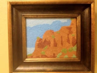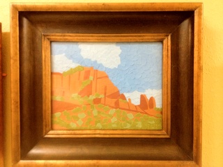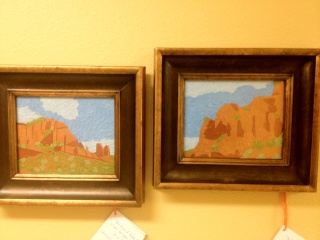 Here are the two Sedona, Arizona Red Rock pieces hanging side by side. For both of these I wrote, "Inspired by photographs taken on our first visit to Sedona, AZ in March 2006. My sister lives near there, and a piece of my heart as well."
