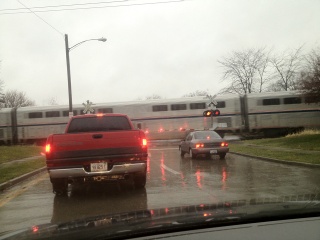 Two things you can count on, when you are in a hurry and running late…pouring rain and bein’ stopped by a train. So, I wore my polka dot rain boots and slowed down to enjoy the journey.
