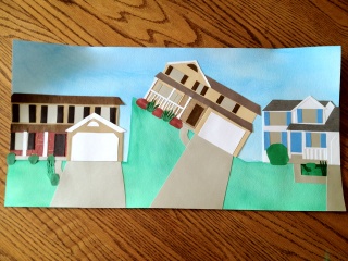 Angel knew about the two houses I’d drawn in my sketchbook. A few weeks ago she e-mailed me a link to an artist’s website to explore, and asked if I’d made any more houses. On April 24, 2012 I replied, “I haven’t drawn any more houses since last Memorial Day weekend when one was upside down and one was on tilt.”
