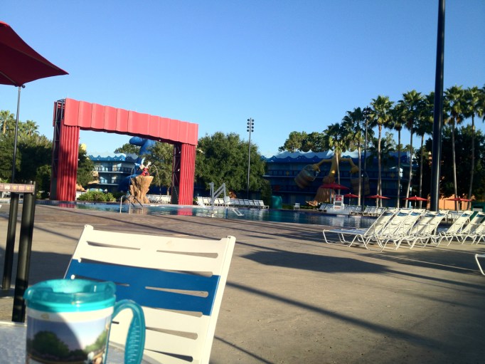 I’m finding my mellow poolside, under palm trees and a light blue sky. Not a cloud in it either. Just right breeze and temp too for shorts and a t-shirt at 8:36am ET. Maybe the coffee has something to do with that. Oatmeal with brown sugar and cinnamon too. Snuck out while my family was sleeping. Some quiet alone time, just for me.