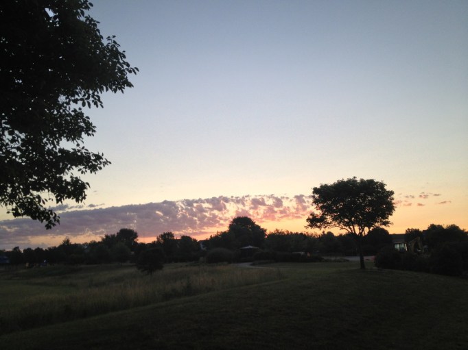wisps of pink clouds surrounding