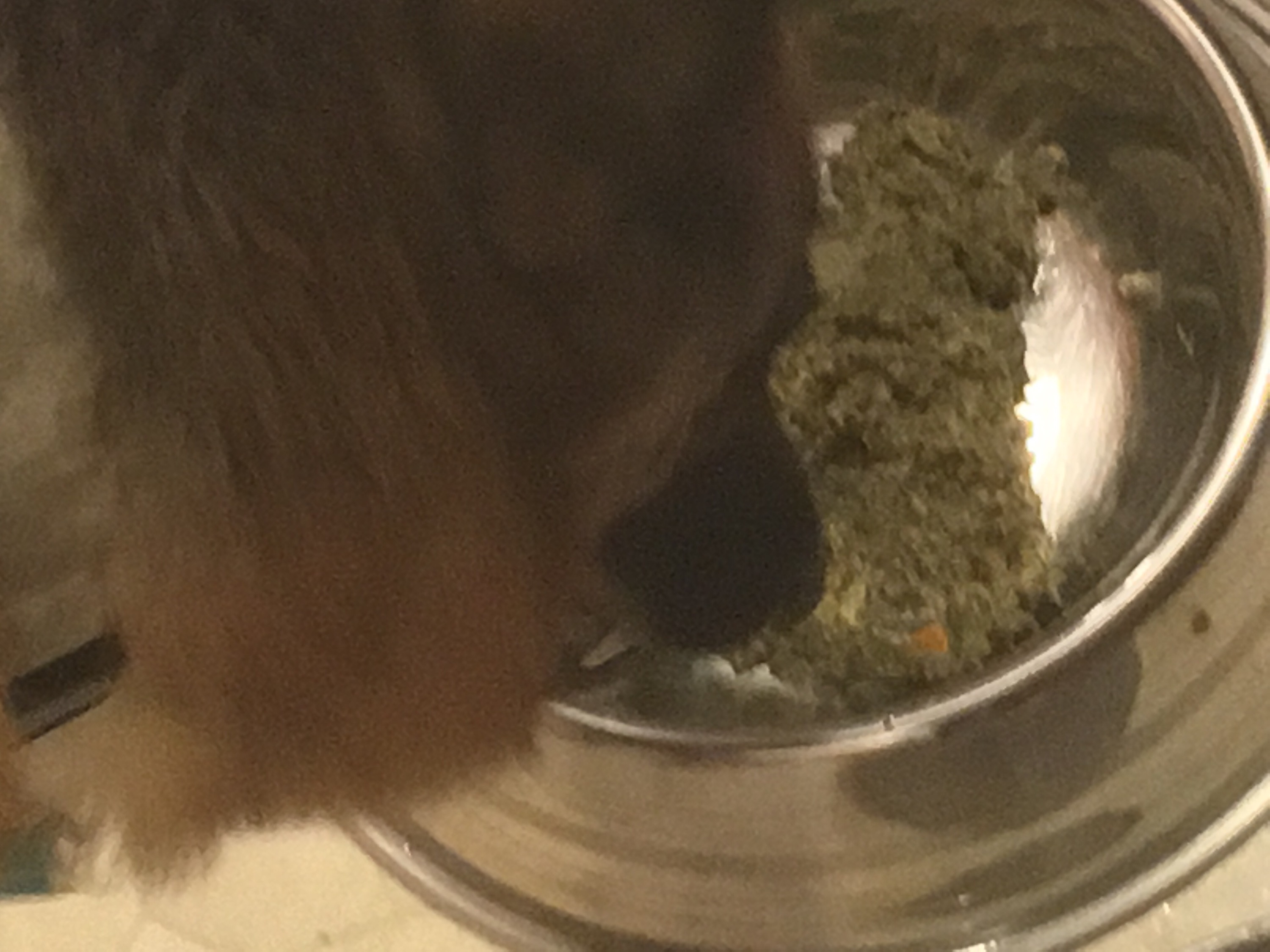 Day 2 of green goo food went some better. I mixed it less soupy and Blue considered eating a little longer before walking away.