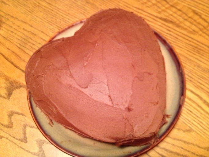 I baked the cake I promised my boys yesterday, after I said, “No” at the grocery store. They were both drooling over a display of square cakes near the bakery decorated in patriotic red, white and blue. Two heart shaped chocolate cakes are cooling atop the oven now. Those two cake loving boys are still sleeping which meant I got to lick the beaters, bowl and spatula all by myself. It’s a good thing I caught my reflection in the bathroom mirror to clean the telltale chocolate cake batter off of my face before they wake up. I’m tackling the thistle roots in the garden next. It must be Saturday morning.