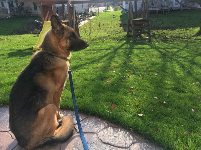 Blue and I sat in the backyard sunshine this morning after both boys left for school. I took some still photos of Blue looking left and then right, assessing, protecting, for this is his turf. The birds serenaded as the cool breeze blew making the wind-chimes chime. I made this video to save and share this moment in time. Blue is slowing down, eating less and sleeping more. We are staying in our own yard instead of walking sidewalk paths we both know by heart. Thankful for each day, especially quiet moments such as this.