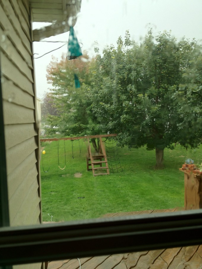 I welcomed the sight, sound and feel of the pouring rain yesterday evening. Yes, feel, because OF COURSE The Dog had to “go”, so I donned my peacock rain boots, red rain jacket with the hood, didn’t bother with an umbrella, and out we went. How I love the too sparse this year rain.