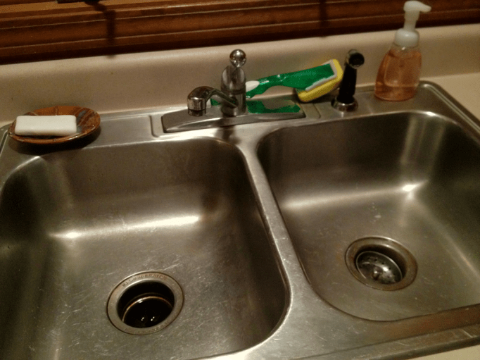 I hold down the sink edge