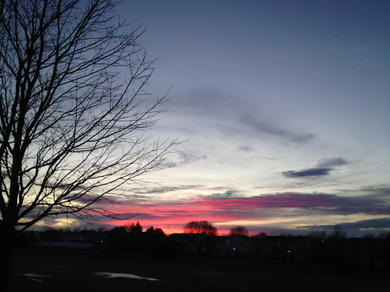 The last sunset of 2013 was a cool blend of blue sky and puffy white clouds with bands of pastel stripes. Gorgeous bare trees in the foreground make the background all the more lovely. Happy New Year, have fun and stay safe tonight! Cheers to 2014, may it hold lots of peace, joy and love. ~Janean