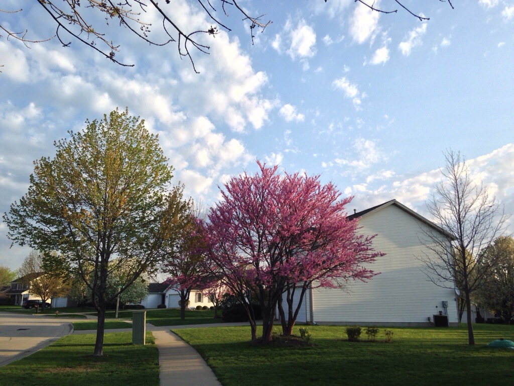 magnolias and forsythia fade into redbuds and the white burst of Bradford Pears