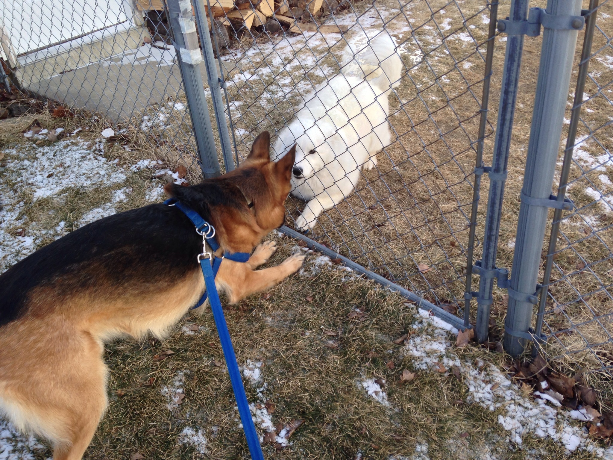 New girl on the block, Daisy, is crazy for Blue.